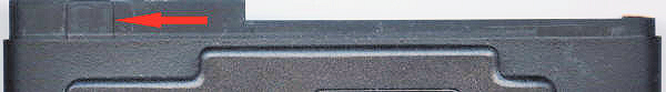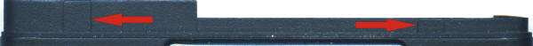 Oben die Hinterwand der D-35M/D-35 (Für die M-Serie), die Pfeile verweisen auf die Nocken an der Oberkante der Rückwand. Die linke Nocke ist ca. 5 mm breit. Auf der D-35G (GT-Serie) unten sieht man nur eine Nocke, welche überdies ca.6 mm breit ist.