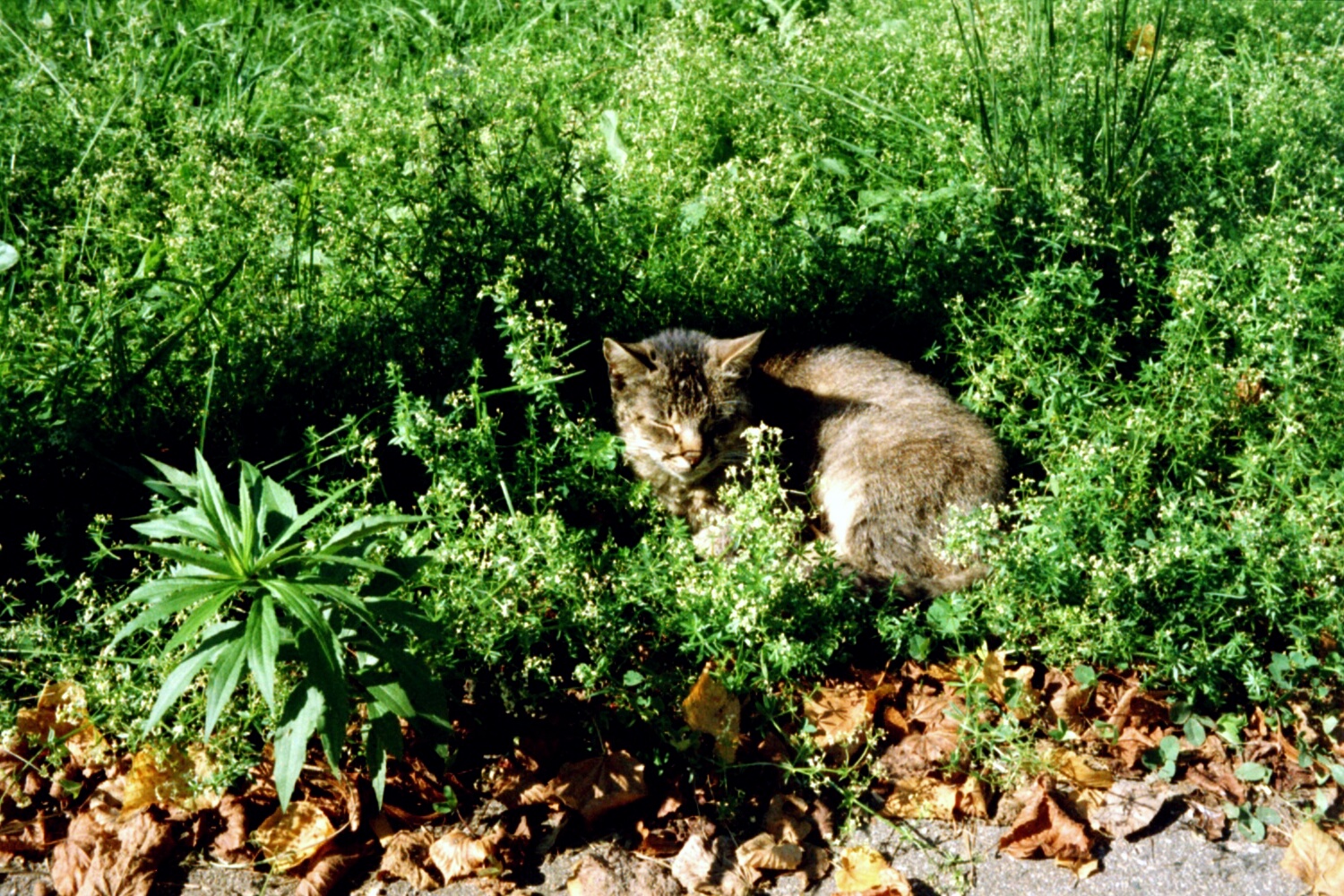 Katze in der Frühlingsonne.AGFA Vista 200; Minox ML.
