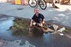 Auf einem Schulfest, war für diesen Junge die Pfütze immer noch das Interessanteste. |