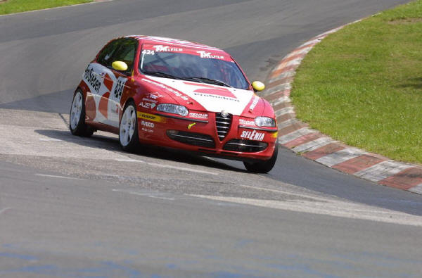 Iris Dorr im Alfa auf der Nürnburg-Nordschleife.Minox 35 PL; ASA 200.. |