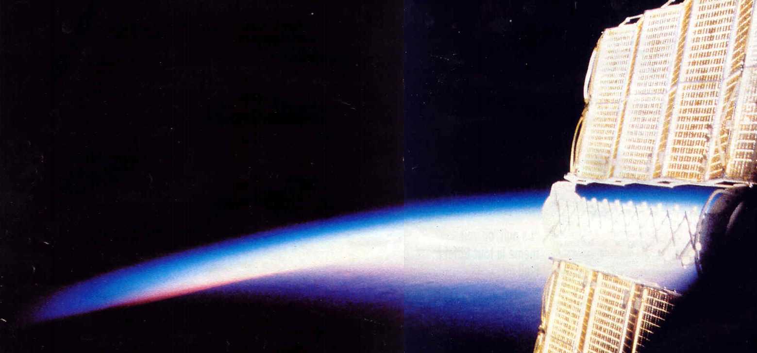 Aufnahme des Übergangs von Tag zu Nacht aus der Raumstation Mir 1989 von Jean-Loup Chretien aufgenommen; Minox 35 GT