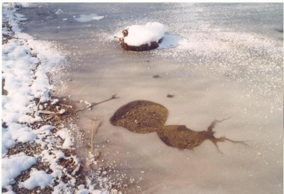 Der See friert regelmässig zu. Beim Auftauen bilden sich interessante Muster |