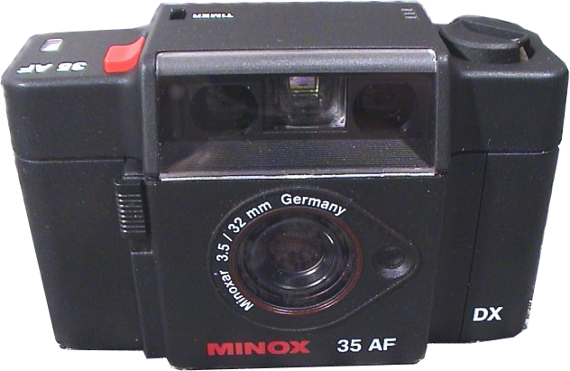 Das Objektiv heißt hier Minoxar, ein Skylightfilter ist festeingebaut und hat jetzt eine Brennweite von 32 (anstatt 35) mm sowie einegrößte Blendenöffnung von f3,5. Es besteht immer noch aus 4 Linsen in 3 Gruppen. Die relativ kleine Blende sollte in Zusammenarbeit mit dem Autofokus scharfe Bilder liefern. Die kleinste Blende liegt bei f11.