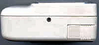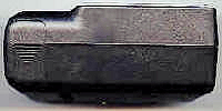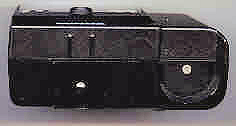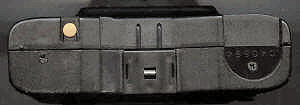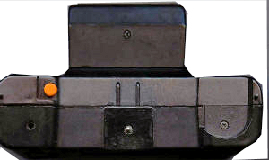 Von oben. Der Kopf ist schwenkbar, man sieht die Gradeinteilung. Der gelb Knopf links ersetzt den durch den Blitzverdeckten Auslöser der Camera.