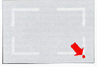Der Blick durch das Okular zeigt außer dem Leuchtrahmen nur eine Überbelichtungs-LED in der rechten unteren Ecke: