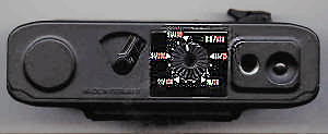 Die Linke grüne Diode dient zur Batteriekontrolle, die rechte rote Diode zur Langzeitwarnung (>1/30 Sekunde) und wird in das Okular über Faseroptik eingespiegelt. Batterietaste und Gegenlichtschalter sind oben geblieben. Der Gegenlichtschalter öffnet sich von hinten nach vorne und verdoppelt die Belichtungszeit.