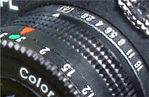 Blendenreihe: A; Bzw. für den Blitz: 2,8; 4; 5,6; 8; 11,16 Von rechts nach links zunehmend.