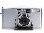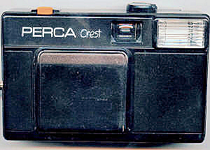 Contax aus dem gleichen Hause, Vollplastik anstatt Metall. Der Wiedergänger dieser Kamera, und wahrscheinlich das Original, heißt Perca Crest und da steht gar keine Herkunft darauf. Einziges Kontrollelement ist im Sucher eine rote Unterbelichtungswarnungs-LED, bei Unterbelichtungsgefahr wird aber nicht der Auslöser blockiert. Wenigstens bei geschlossener Frontklappe wird der Auslöser gesperrt. Kein Rahmen.