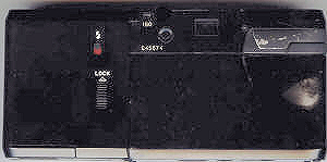 empfindliche Sensorfläche. Das Bildzählwerk ist auch schön übersichtlich. rechts neben dem Schriftzug sieht man die geriffelte Grifffläche, mit der man die Objektivabdeckung nach links schiebt. Sie gibt Okular und Objektiv frei. Der Rückspulknopf entriegelt die Rückwand.