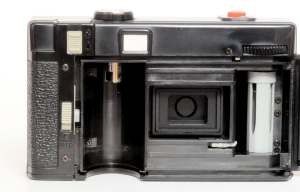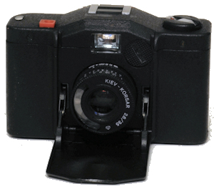 Wohl die dreisteste Kopie einer Minox 35 Camera kommt aus der Ukraine. Gesehen habe ich diese Kamera nur in grün, es soll sie aber auch in grau und schwarz geben. Fest steht, das es eine der wenigen Kameras ist, welche Licht überall durchlassen: Durch die Blendelamellen (die nicht aus Metall sondern aus Kunststoff sind), durch die geschlossene Rückwand und diverse Schlitze und Ritzen. Es gibt Anwender, welche empfehlen die Kamera schwarz anzumalen um sie lichtdicht zu machen, hübscher wird sie dadurch nicht. Das Problem liegt möglicherweise in den Fasern der Glasfaserverstärkung, welche wie Lichtleiter funktionieren. Mit welchen Batterien man sie in der Ukraine füttert weiß ich nicht, mit einer PX-27 geht der Belichtungsmesser nicht, mit 2 Batterien 1/3CR schon. Bei meinem Exemplar war auch eine Kunststoffröhre für die Isolation der Batterien dabei. Umfassende Kommentare gibt es von Mark Hahn hier: Kiev 35 (Links tot)