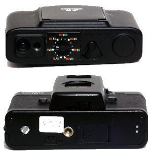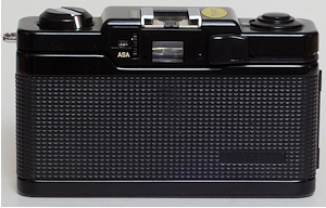 Im geschlossenen Zustand ist das Okular verdeckt. Auf der Objektivabdeckung ist hinten eine runde Griff-Riffelung angebracht. Der Film wird mit einem Rändelrad gedreht. Wenn man bei einer EL den Tarnsporthebel abbricht, sieht das genauso aus und ist genau so schlecht zu bedienen. Die Typenbezeichnung ist nur oben zu sehen. Es gibt noch Version bis XA 5, aufpassen bei Versteigerungen, ist nicht immer gleich ersichtlich. Die Rückwand
