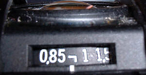 An der rechten Seite des Okulars findet sich der Zeiger des Belichtungsmessers,