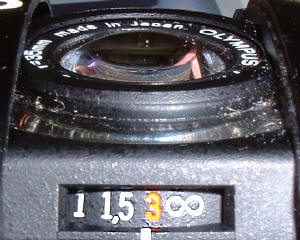 Die Abstufung ist nicht gerade sehr fein: 0,85-1-1,5-3-Unendlich. Das Objektiv wird nicht heraus geschoben, der Abstand von Frontlinse zum Film ist sehr kurz. Die Olympus-Ingenieure hatten es also etwas schwer mit der Objektiv-Konstruktion. Das Ergebnis ist ein sehr kurzer Sechslinser. Laut einem amerikanischen Photomagazin sind die optischen