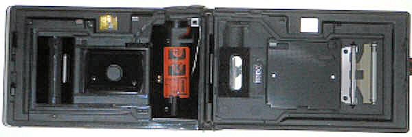 Die Filmaufnahmekammer ist auch interessant konstruiert, die Filmandruckplatte wird nach unten heruntergeklappt.