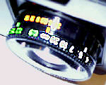 Er ist sehr bequem einsehbar, besser als bei den Minox-Cameras, fällt mir schwer, ist aber so. In der Mitte der Dame sollte man das grünliche Mischbild des Entfernungsmessers sehen, sieht man auf dem Photo nicht, in Wirklichkeit ist es auch nur schlecht zu sehen. Der Entfernungsmesser ist genauso wenig brauchbar wie der von der Olympus XA. Das sichtbare Bild ist größer als der Photorahmen, sehr angenehm. Über dem Kopf der Dame erscheint eine riesig große LED wenn man den Selbstauslöser an hat, für den Fall, das man ihn vergessen hat. Neben den gravierten Zeiten sind 4 LED welche die eingestellte Zeit anzeigen und bei Blitzbereitschaft blinken. Die Überbelichtung wird durch eine dreieckige LED angezeigt, alle anderen sind rund. Für Zwischenzeiten können auch 2 LED gleichzeitig an sein. Zeigt die unterste LED an, ist die ZEit kleiner als 1/30 Sekunde, also akute Wackelgefahr.