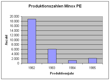 PE wie Programm+Elektronenblitz ? Vielleicht, fest steht, dass die PE eine PL mit seitlich angebauten Elektronenblitz ist. Dieser wird mit einer einzigen Mignon Batterie betrieben und hat trotzdem die beachtliche Leitzahl von 14 bei ASA 100. Der Blitz braucht 1,5 Volt Batterien, mit Mignon-Akkus läuft er nicht. Einen Serienthyristor oder einen Vario-Computer hat der Blitz nicht. Die Blitzfolge ist daher ca. 10 Sekunden und die Reichweite etwa 3,5 m. Dafür leuchtet er das Aufnahmefeld gut aus, bei heutigen Kompaktkameras eher eine Seltenheit.