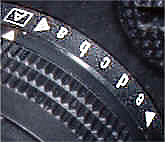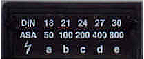 Wie bei der PL ist die höchste Empfindlichkeitseinstellung 400ASA. Bei Blitzbetrieb kann man 800 ASA einstellen. Grün/rote Markierung (DIN/ASA), Außen immer die DIN-Markierung.