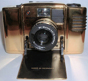 Obwohl sich bei der goldenen MDC um eine voll funktionsfähige Camera handelt, ist sie definitiv nicht für den Gebrauch, sondern für die Sammlervitrine gedacht. Die Oberfläche ist einfach zu empfindlich, allerdings kenne ich jemanden, der trotzdem sein goldene MDC „ausführt“.
