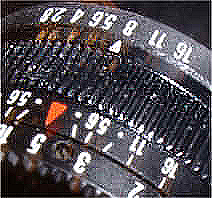Entfernungsmarierungen: 0,9; 1; 1,2; 1,5; 2; 3; 5; 10; Unendlich.