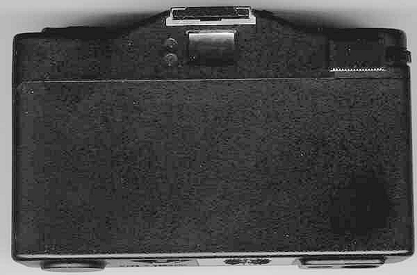 Vorne liegt der Knopf für den Batterietester, hinten der Gegenlichtschalter. Dieser öffnet sich von hinten nach vorne. Der Drahtauslöser ist immer noch im Auslöseknopf. Der weiße Punkt auf dem Rückspulknopf ist etwas klein geraten. Die Nase zum Einstellen der Blitzsynchronisationszeit liegt immer noch vorne.