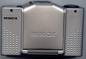 Die typische bauchige GT-E-Form. Sehr angenehme Griffnoppen, die Kamera liegt gut in der Hand. Minox Schriftzug auf der Frontklappe, ohne farbliche Hervorhebung dafür eine schwarzer Schriftzug auf der linken Seite (von vorne gesehen) unter dem Auslöser. Die Gehäuseform ist bei den 4 Cameras (GT-X, GT-S, GTE und GT-EII) identisch, die Farbgebung und die Oberfläche sind unterschiedlich. Eigentlich ist „die“ Farbe der Cameras schwarz, aber in dieser silbrigen Ausführung sieht sie schon sehr schick aus, da kann man auch als Purist schwach werden….